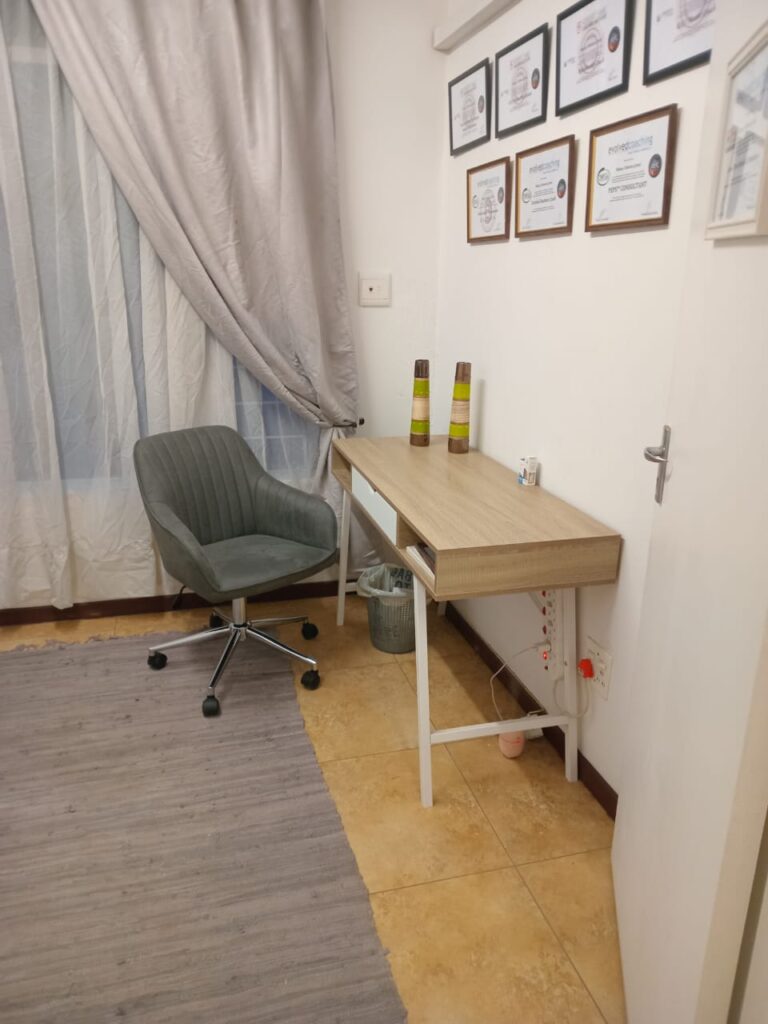 Welcome to Bianca’s office at TLC Therapies and Training. As a dedicated therapist, Bianca is committed to helping individuals navigate life’s challenges and achieve lasting well-being. Her office is thoughtfully designed to create a safe and supportive environment where clients can freely explore their thoughts, feelings, and experiences. This serene space embodies comfort and trust, fostering a therapeutic atmosphere essential for personal growth and healing.