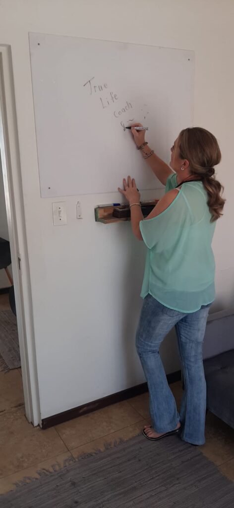 Captured in action, Bianca is seen here at her whiteboard, skillfully illustrating key concepts and strategies. This visual demonstration reflects her hands-on approach to therapy, where she combines insightful discussion with practical tools and techniques. In her office at TLC Therapies and Training, Bianca ensures that every session is a collaborative effort toward understanding and achieving personal goals.